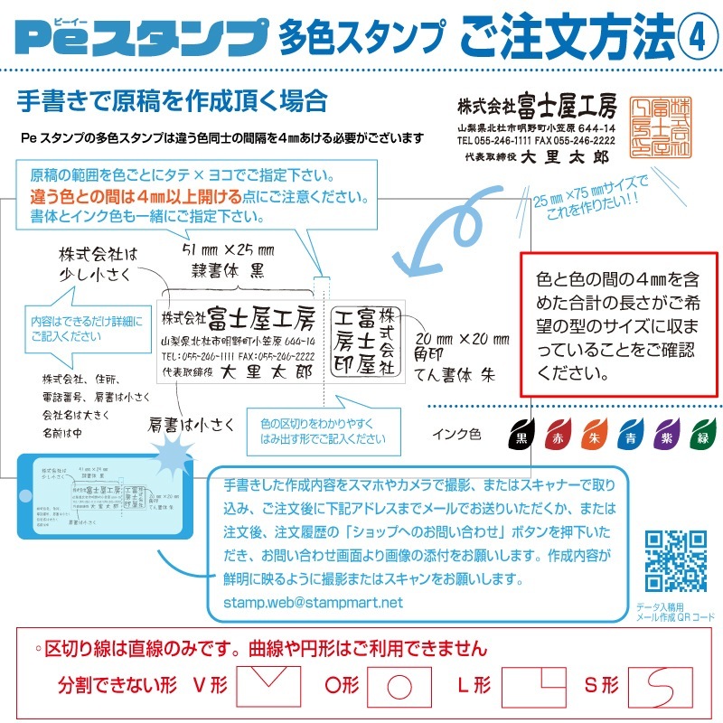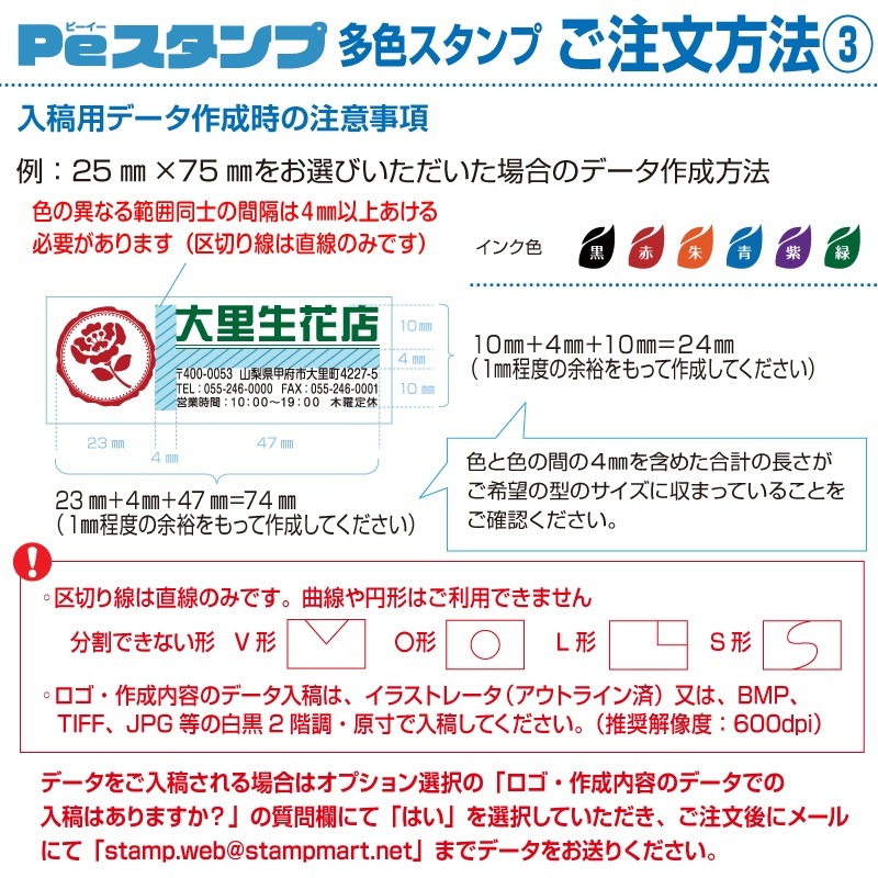 縦15mm×横65mm Peスタンプ角型 フリーデザイン 2色