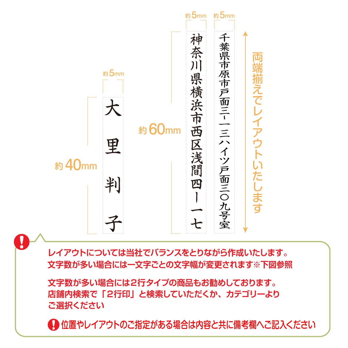また、文字数によっては弊社で行数等を変更させて頂く場合がございますので、あらかじめご了承ください。